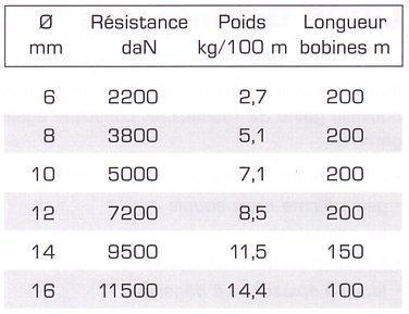 Tableau Diamètre / Résistance sur la photo ci-dessus.