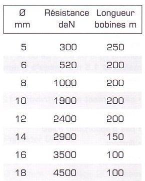Tableau Diamètre / Résistance sur la photo.