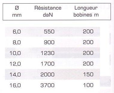 Tableau Diamètre / Résistance sur la photo ci-dessus.