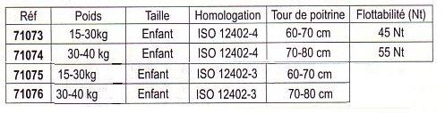Les gilets enfant Chico Lalizas 100 et 150 N sont confortables. Un grand col soutient la tête et une courroie à l'entre jambe permet un réglage assurant une meilleure stabilité dans l'eau. Toutes les tailles sont ajustables Conforme aux dernières normes Européennes CE ISO 12402-3 et 4 4 modèles proposés ( voir tableau) |