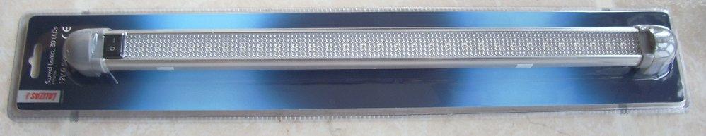 Référence 70685 : - Rotation 180° , 30 leds - Entourage chromé , interrupteur on/off - Dimensions : L 470 mm , l 35 mm , H 33 mm |
